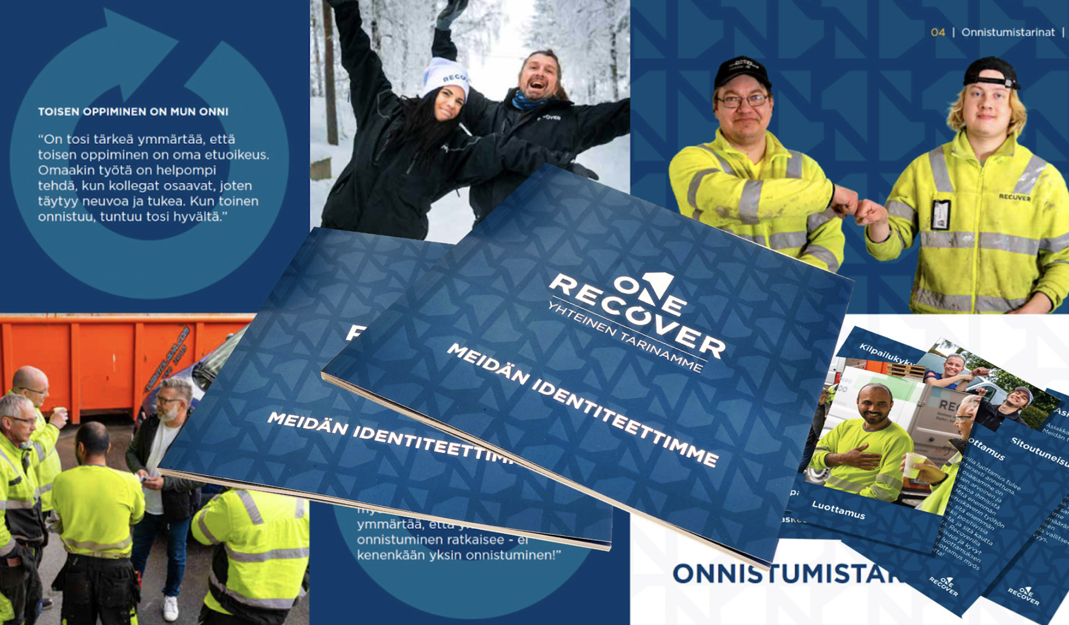 Choicen tiimi auttoi asiakasta konseptoimaan sisäisen kehittämishankkeen niin sisällöllisesti kuin viestinnällisesti. Konseptiksi muodostui ”One Recover - yhteinen tarinamme". Tämän tarinan muotoiluun osallistettiin henkilöstöryhmät toimistolta kentälle. Työskentely tapahtui fasilitoituina pienryhmä työpajoina. Nykyään Recover tunnetaan Suomessakin nimellä Redo Oy, mutta sama strategia on kantanut läpi viime vuodet.